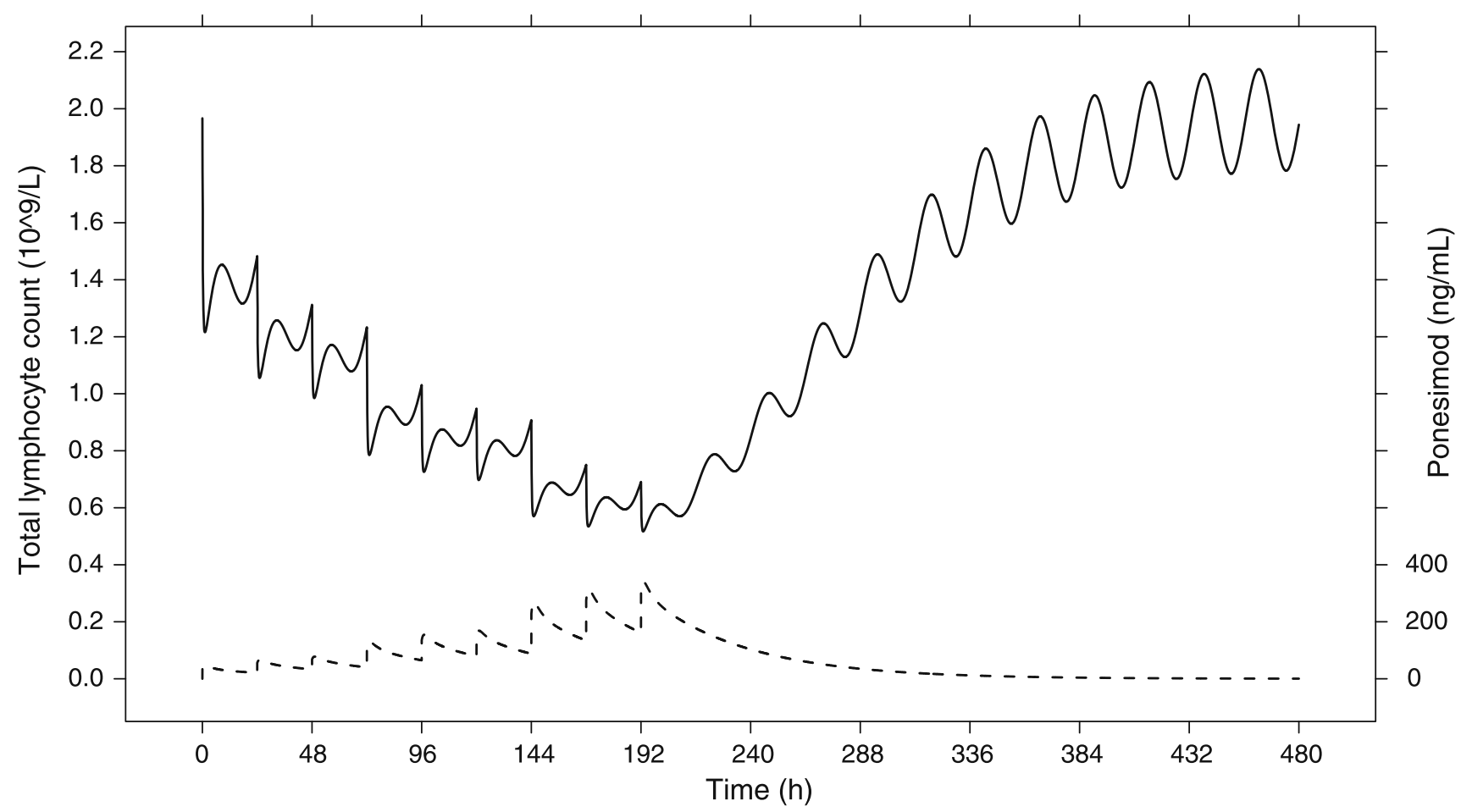 In: Krause, Brossard, D’Ambrosio, Dingemanse: Population pharmacokinetics and pharmacodynamics of ponesimod, a selective S1P1 receptor modulator. JPKPD 2014. DOI:10.1007/s10928-014-9362-4